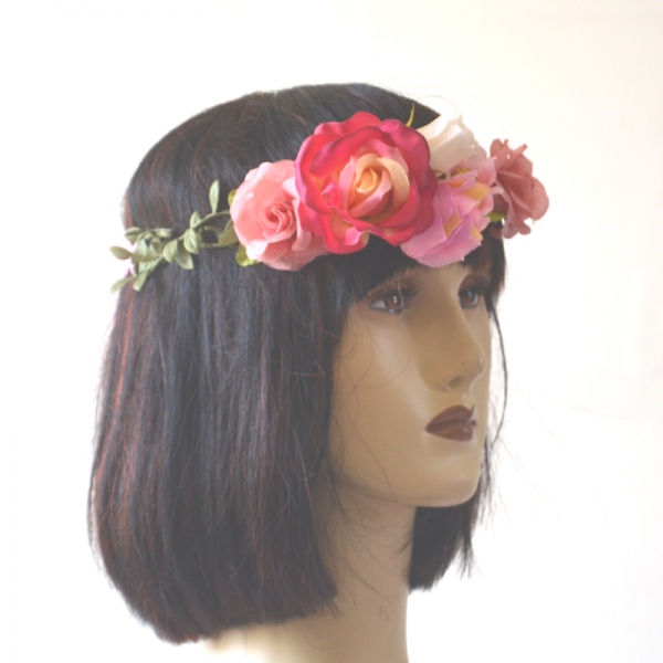 Wine Red Flowers Bridal Head Chain New Hand Made Gold Band Wedding