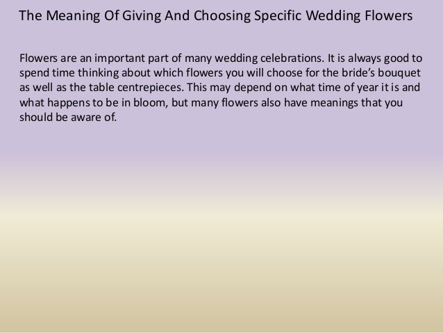 The Meaning Of Giving And Choosing Specific Wedding Flowers