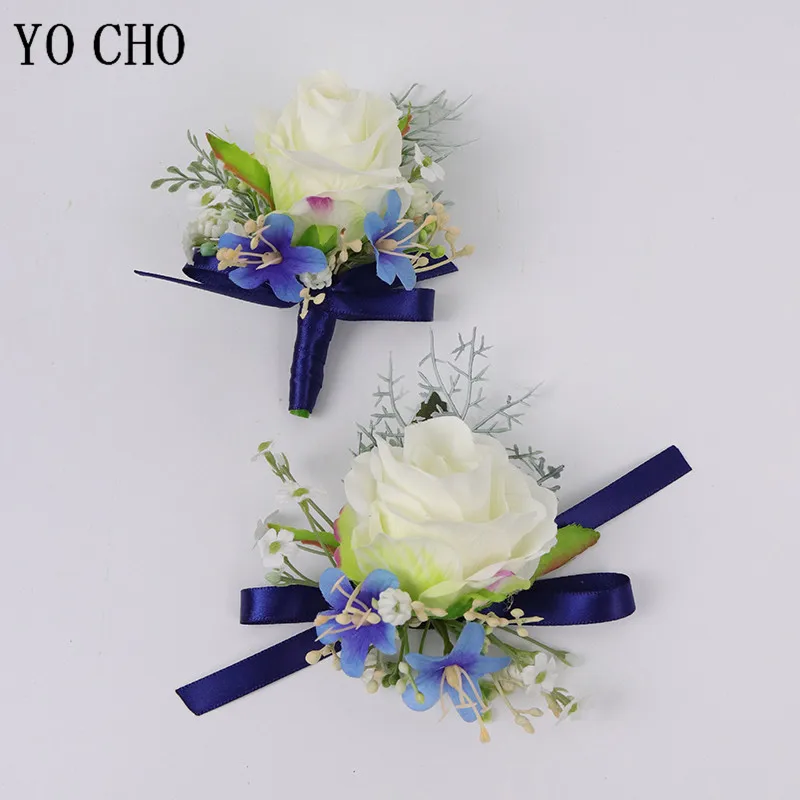 Yo Cho Wedding Groomsmen Boutonniere Pin White Silk Rose Wrist
