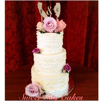 Small 3 Tier Textured Buttercream Covered Wedding Cake With Fresh
