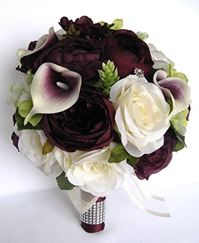 Amazon Com Wedding Bouquets Bridal Silk Flowers Eggplant Green