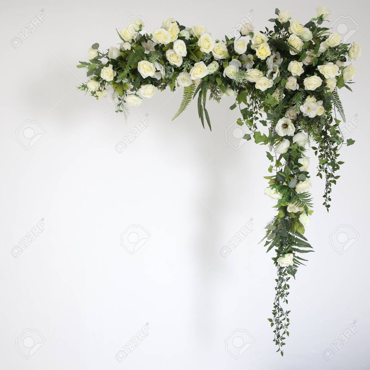 White Framing Frame Of Artificial Flowers Anemones Roses