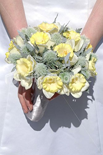 Yellow Real Touch Daffodil Thistle Bridal Wedding Bouquet