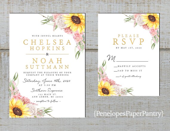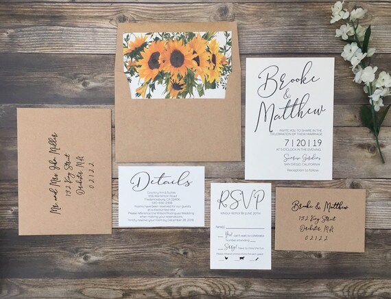 Sunflower Wedding Invitation Calligraphy Invitation Boho Etsy