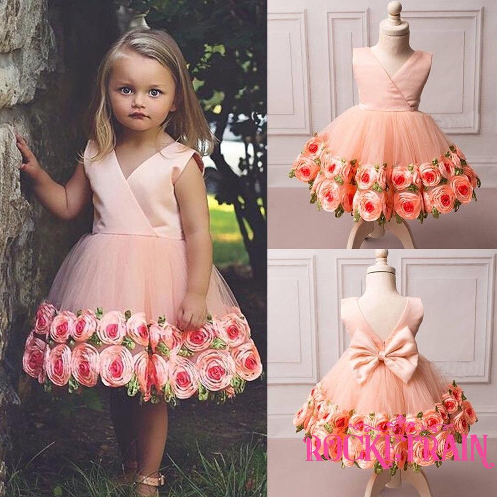Pink Tulle Wedding Cute Flower Girl Dress Color Choice Tiebow 12