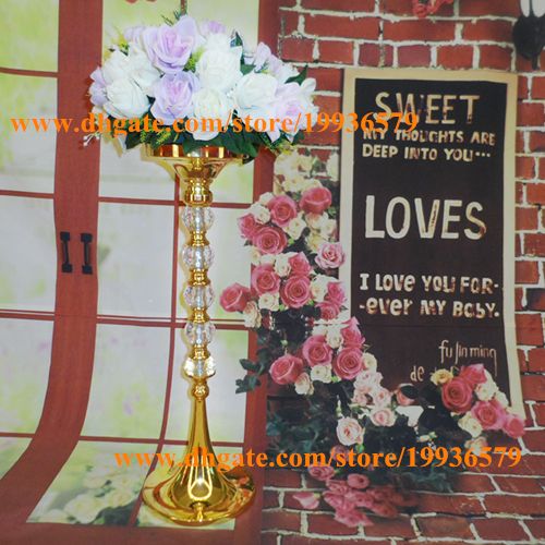 24tall Metal Gold Flower Vase With Shiny Crystal Ball For Wedding