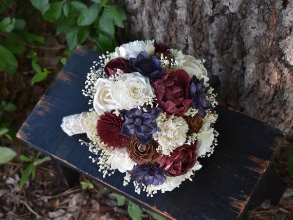 Wedding Bouquet Navy Burgundy Bouquet Rustic Bouquet Wedding Etsy