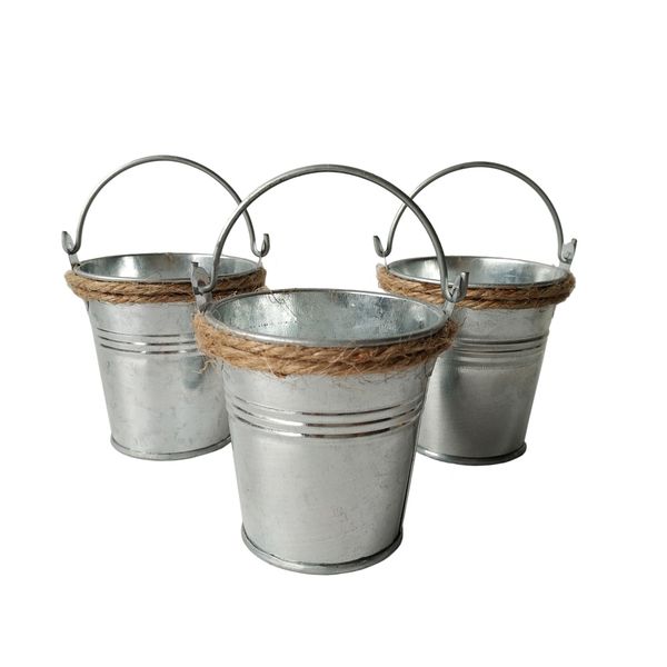 2019 Mini Bucket Flower Pot With Hemp Rope Tin Box Iron Pots