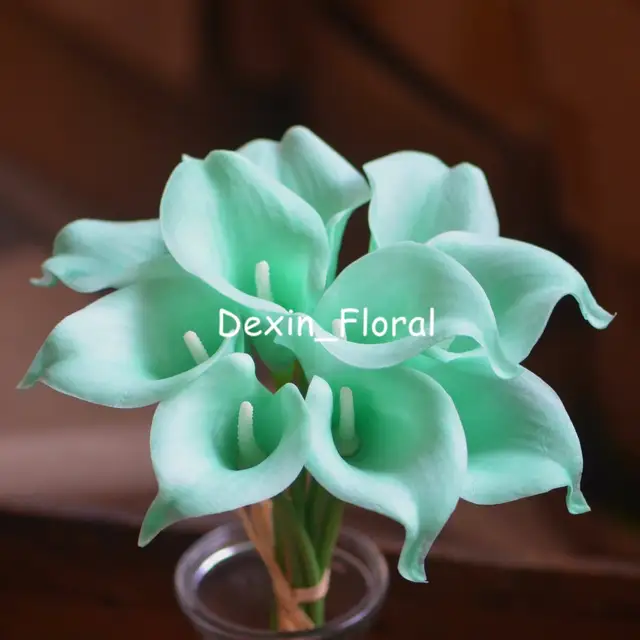 10 Mint Picasso Green Calla Lilies Real Touch Flowers Diy Silk