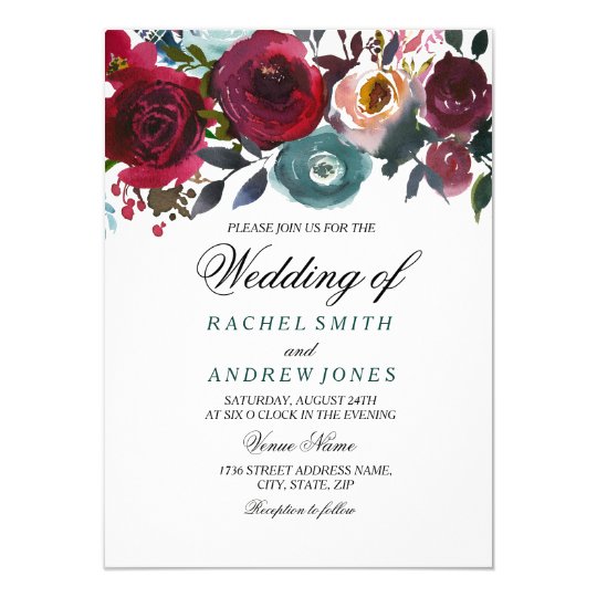 Boho Bordo Burgundy Red Flowers Wedding Invitation Zazzle Com Au