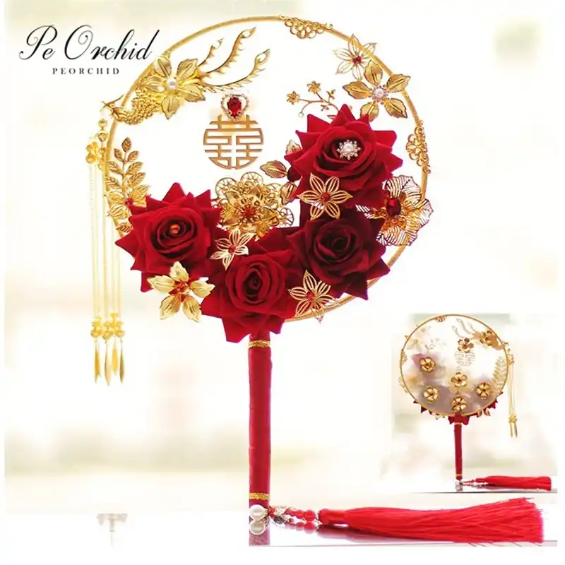 Peorchid Red Pink Gold Wedding Bouquets Brooches Pearl Rose