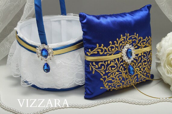 Royal Blue Wedding Flower Girl Basket And Ring Bearer Pillow Etsy