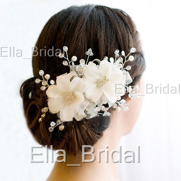 Real Photo Red White Bridal Hair Flowers With Crystal Stones