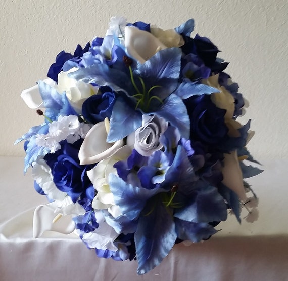 Royal Blue Rose Tiger Lily Bridal Wedding Bouquet Etsy