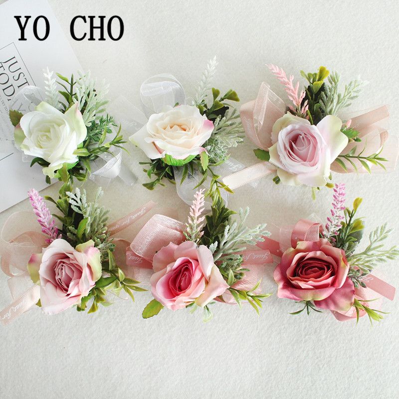 2019 Yo Cho Silk Roses Red Groomsmen Boutonniere Flowers Wedding