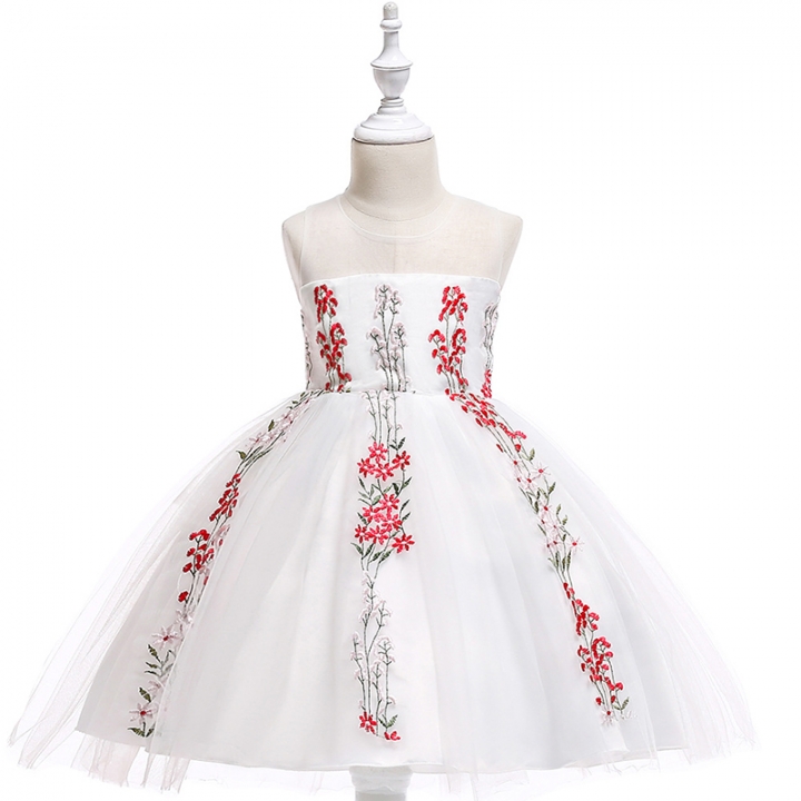 Roni Girl Flower Embroidery Dress Kids Wedding Dress Flower Girl