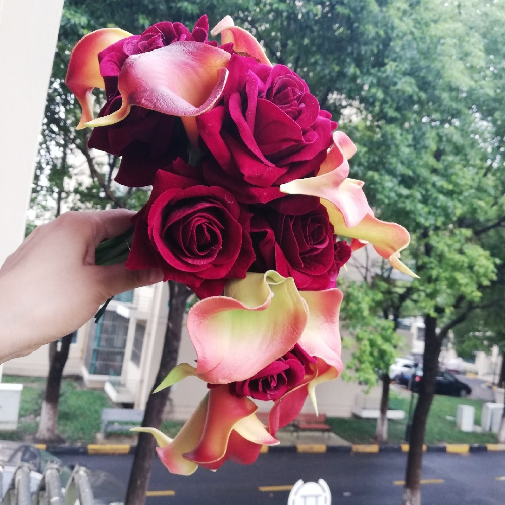 2018 Waterfall Burgundy Wedding Flowers Artificial Red Calla