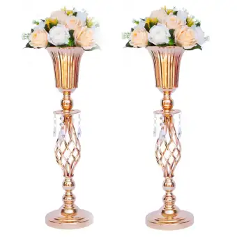 2pcs Gold Candle Holders Stand Wedding Flowers Vase Candlestick