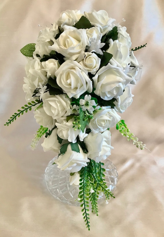 Artificial Wedding Flowers Ivory Rose Brides Teardrop Bouquet Etsy