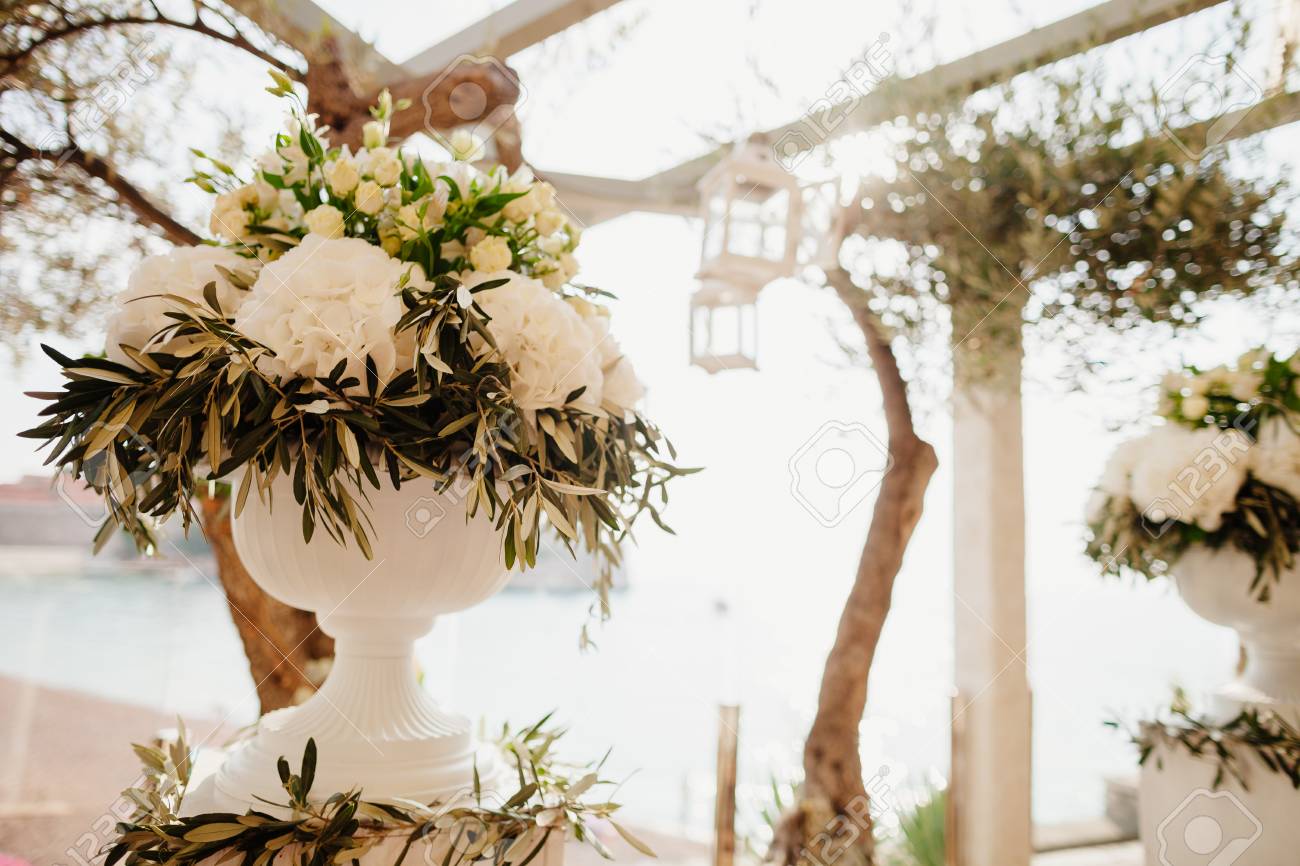 Background Of Beautiful Flower Wedding Decoration Stock Photo