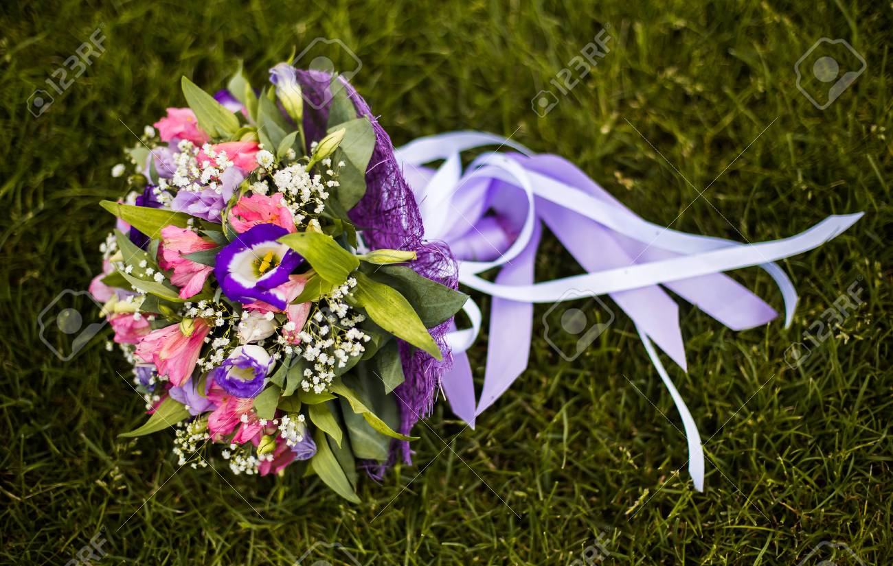 Wedding Bouquet Of Bride Colorful Flowers Pink White Roses And