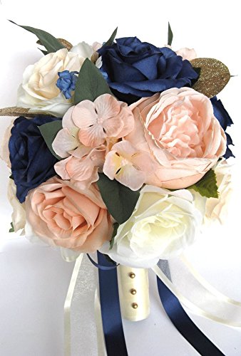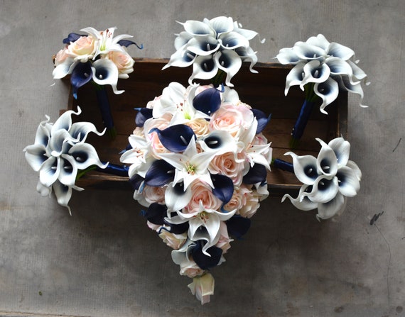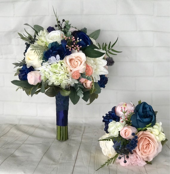 Blush Navy Wedding Bouquets Real Touch Flowers Bridesmaids Etsy