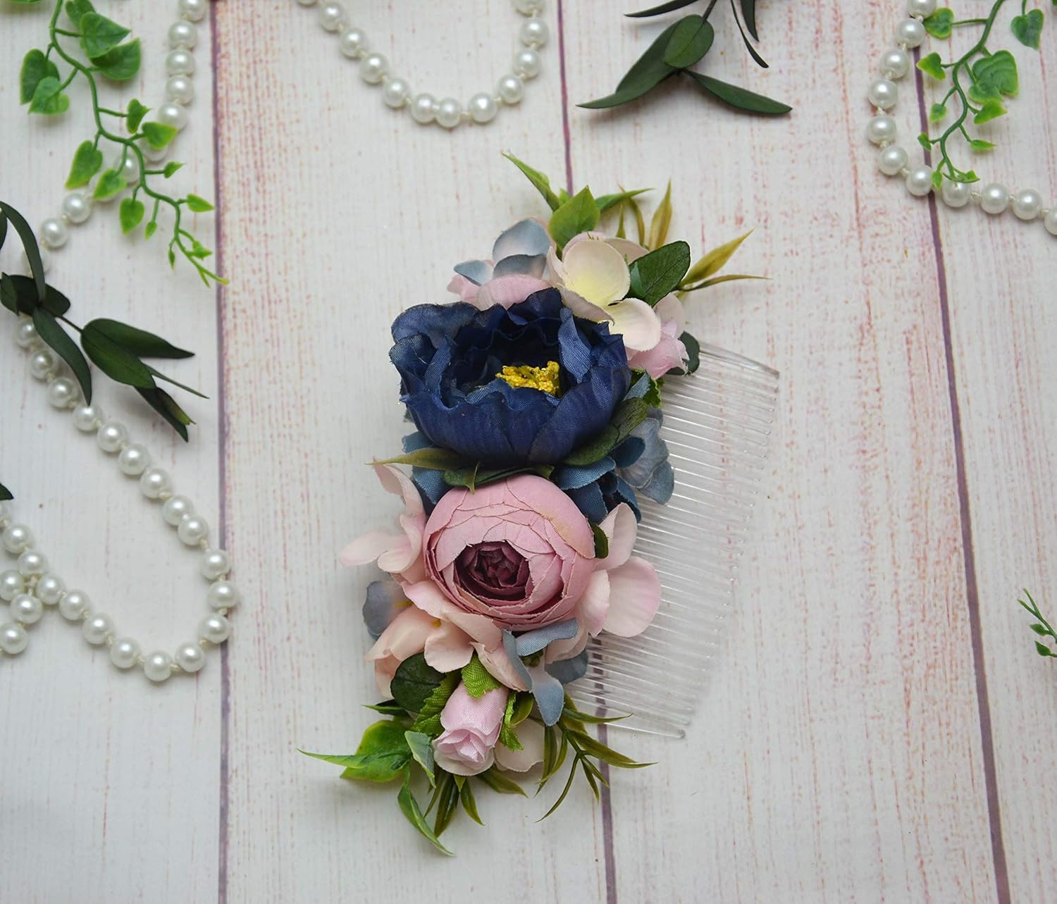 Amazon Com Navy Blue Blush Flower Comb Wedding Floral Comb Bridal