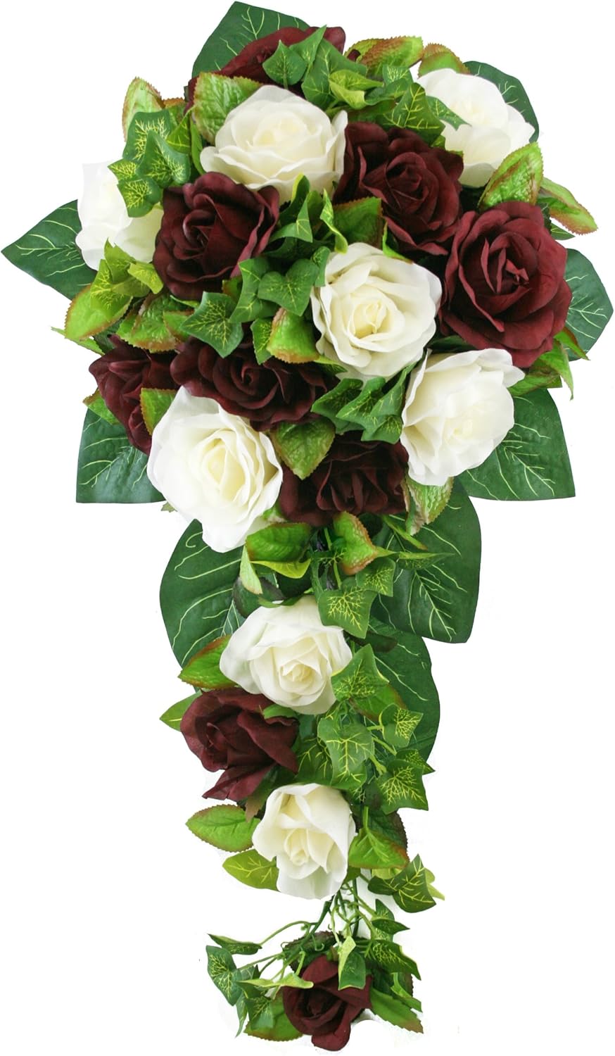 Amazon Com Burgundy And Ivory Silk Rose Cascade Silk Bridal