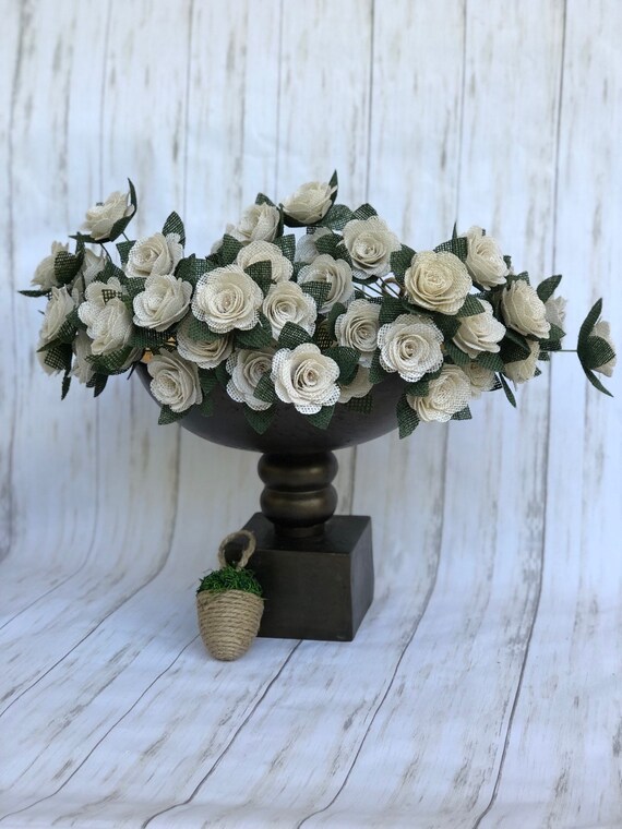 2 Ivory Burlap Flowers Burlap Rose Vintage Diy Bouquet Etsy