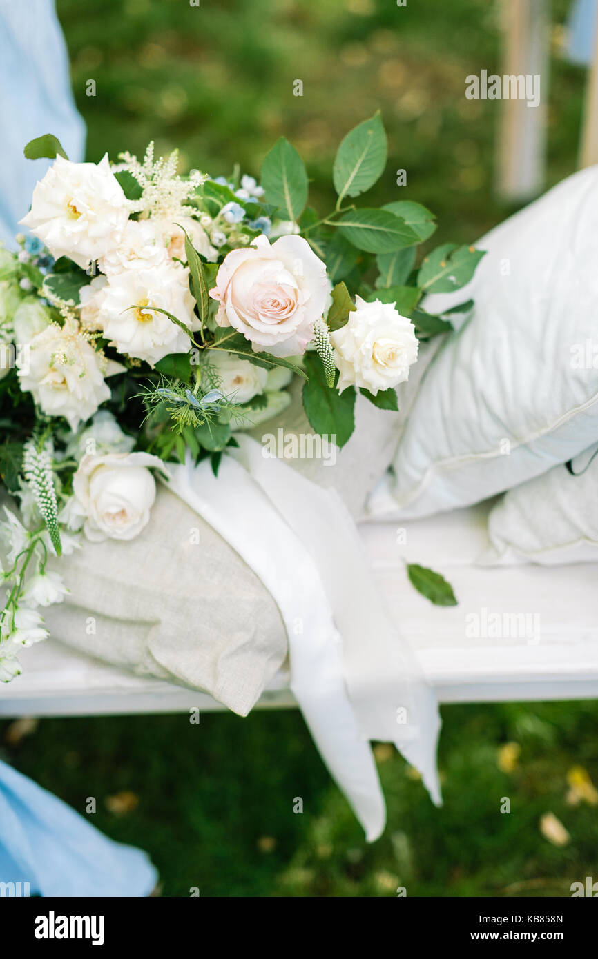 Arrangement Of Fresh Flowers In Pastel Colors Wedding Background