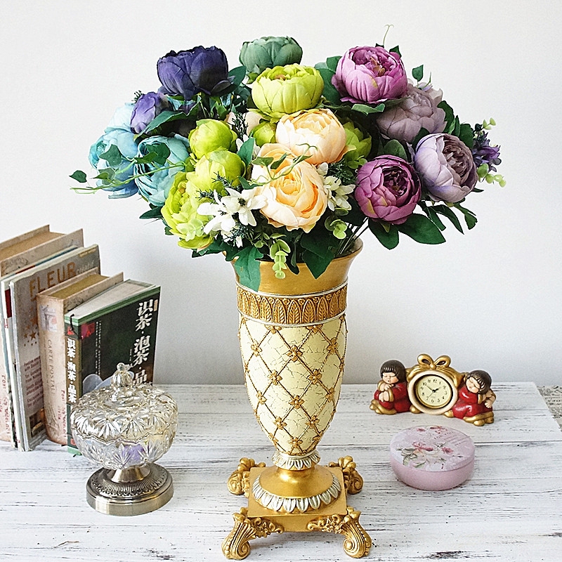 European Oil Painting Heart Peony Artificial Flower Wedding Fake