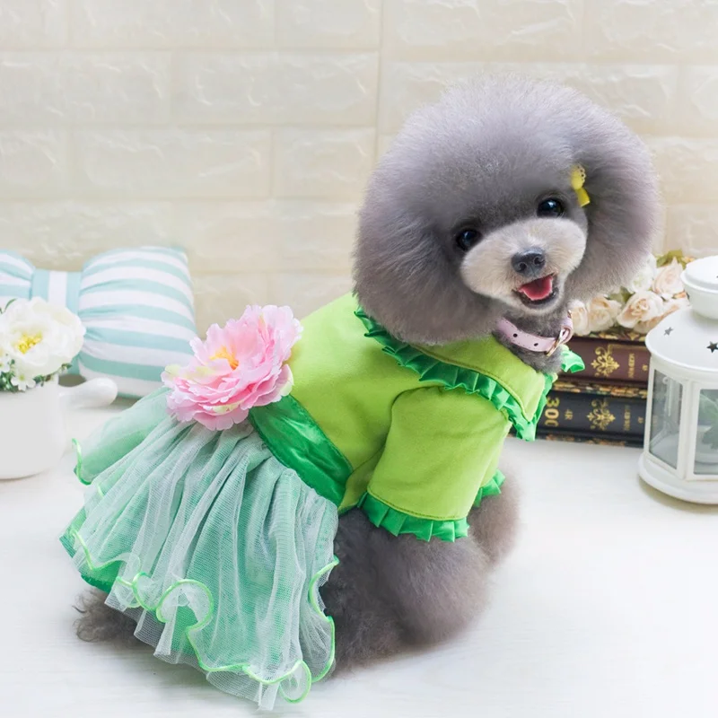 Dogs Dress Princess Fleece Velvet With Beautiful Flower Dogs