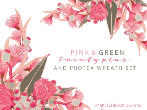 Eucalyptus Protea Floral Wreaths Wedding Clipart Etsy