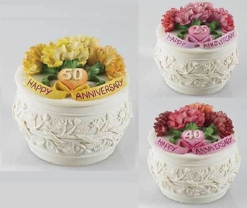 25th Silver Wedding Anniversary Ceramic Flower Trinket Box Ebay