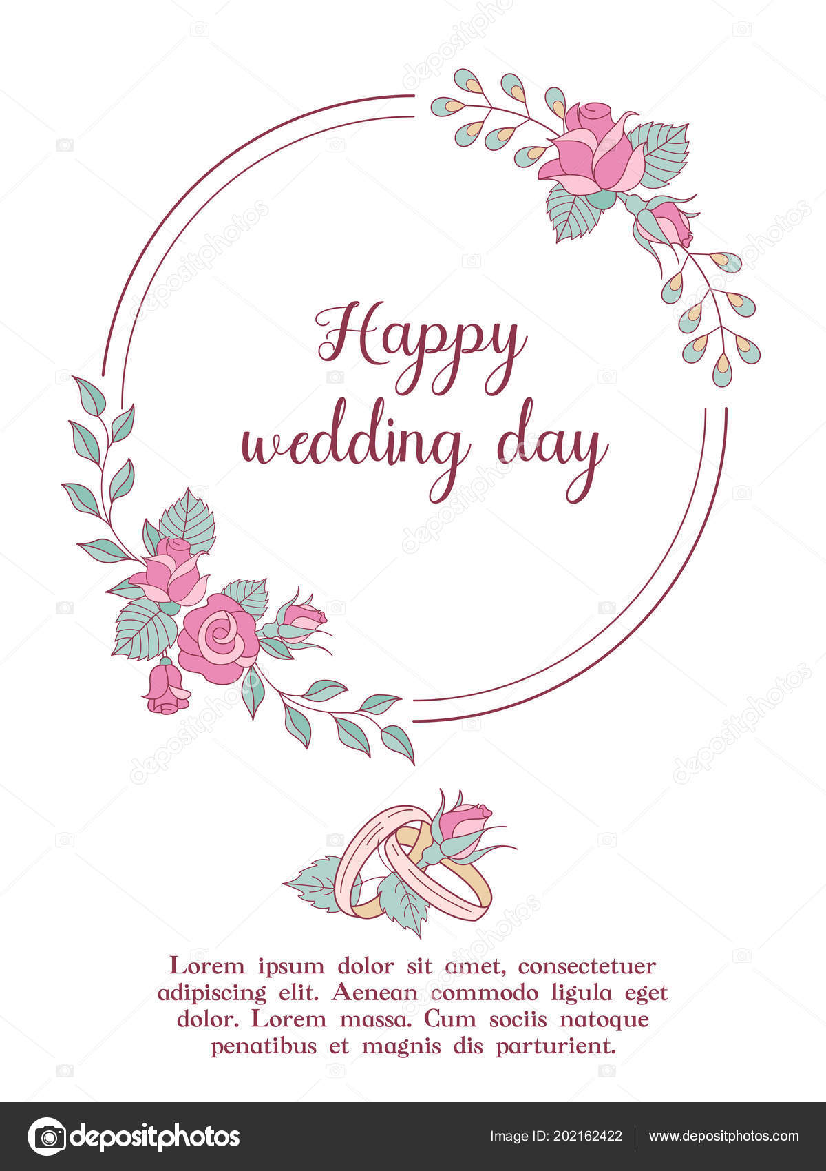 The Inscription Happy Wedding Day With Flowers On A Colored