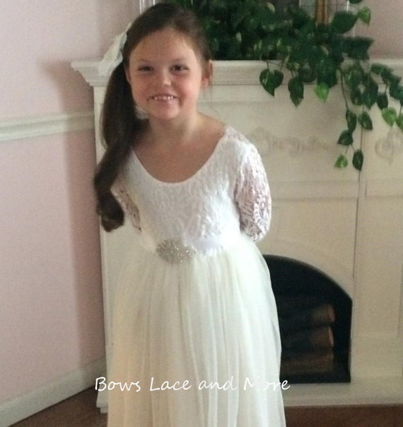 White Lace Flower Girl Dress Ivory Tulle Long Sleeve Wedding Etsy