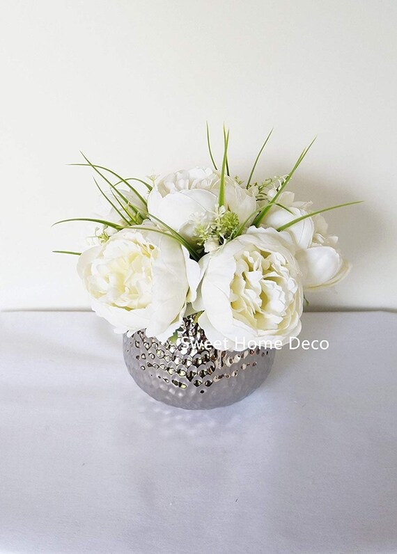 Sweet Home Deco Silk Peony Arrangement Silver Vase Table Etsy