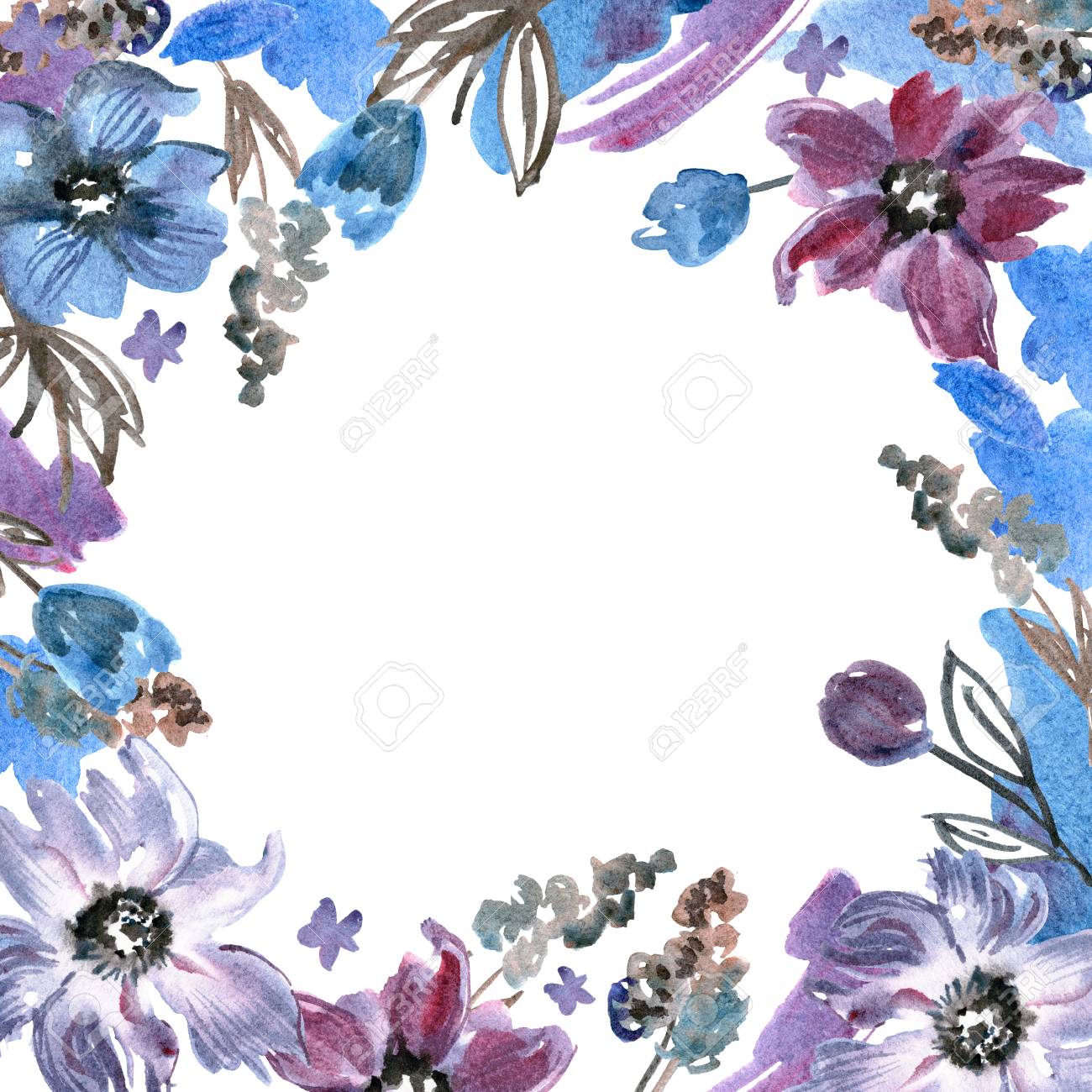 Cute Watercolor Purple Flower Frame Hand Painted Floral