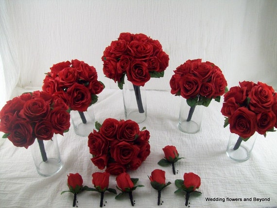 Red And Black Wedding Flowers Rose Bridal Bouquet Silk Wedding Etsy