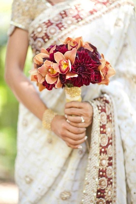 Asian Wedding Bouquet Deep Red And Gold Bride Bouquet Etsy