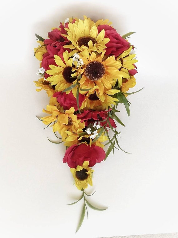 Sunflower Bouquet Sunflower And Red Wedding Cascading Etsy