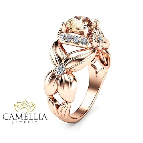 Amazon Com Morganite Engagement Ring Flower Design 14k Rose Gold