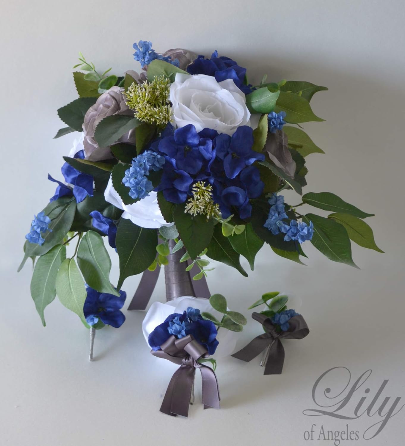 Wedding Flowers Bridesmaid Bouquet In Royal Blue And Ivory Amazon
