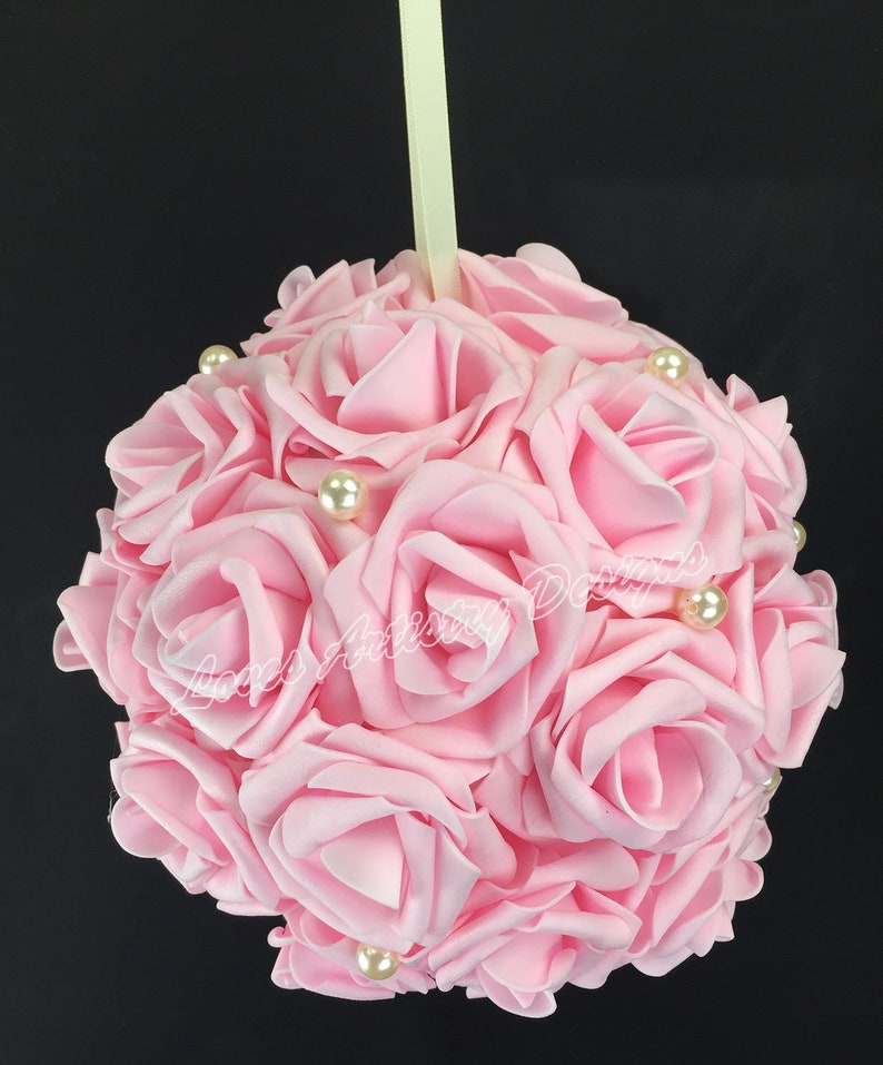 Pink Flower Kissing Ball 8 Pink Silk Rose Flowers Ball Etsy