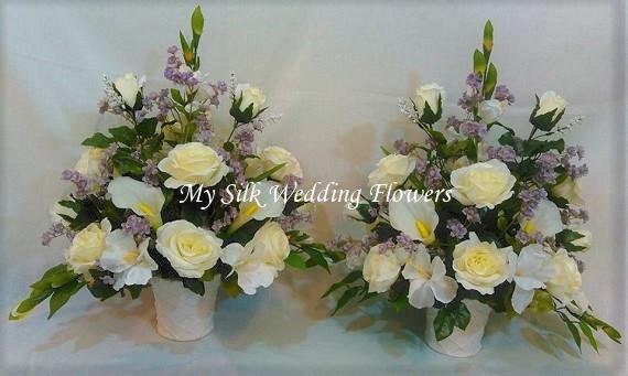 2 Pcs Set Tall Wedding Floral Arrangement Ivory Roses Etsy