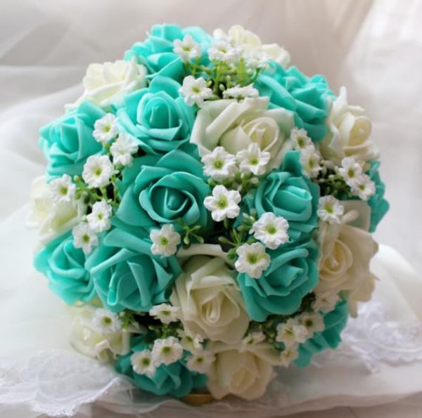 Blue And White Wedding Bouquet Handmade Artificial Flower Rose