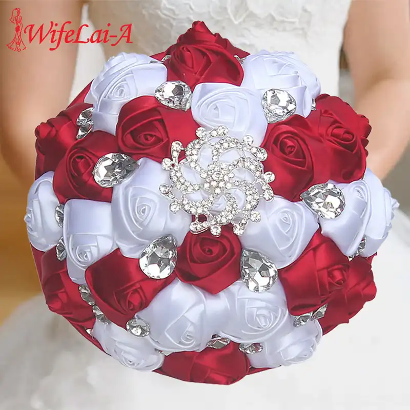 18cm Luxury Rhinestone Wedding Bouquets Burgundy Mariage Bridal