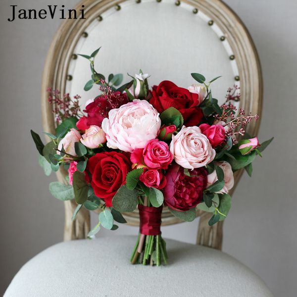 Janevini New Arrival Romantic Red Wedding Bride Bouquet Silk Roses