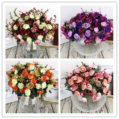21 Head Artificial Fake Silk Rose Dried Flower Bouquet Wedding