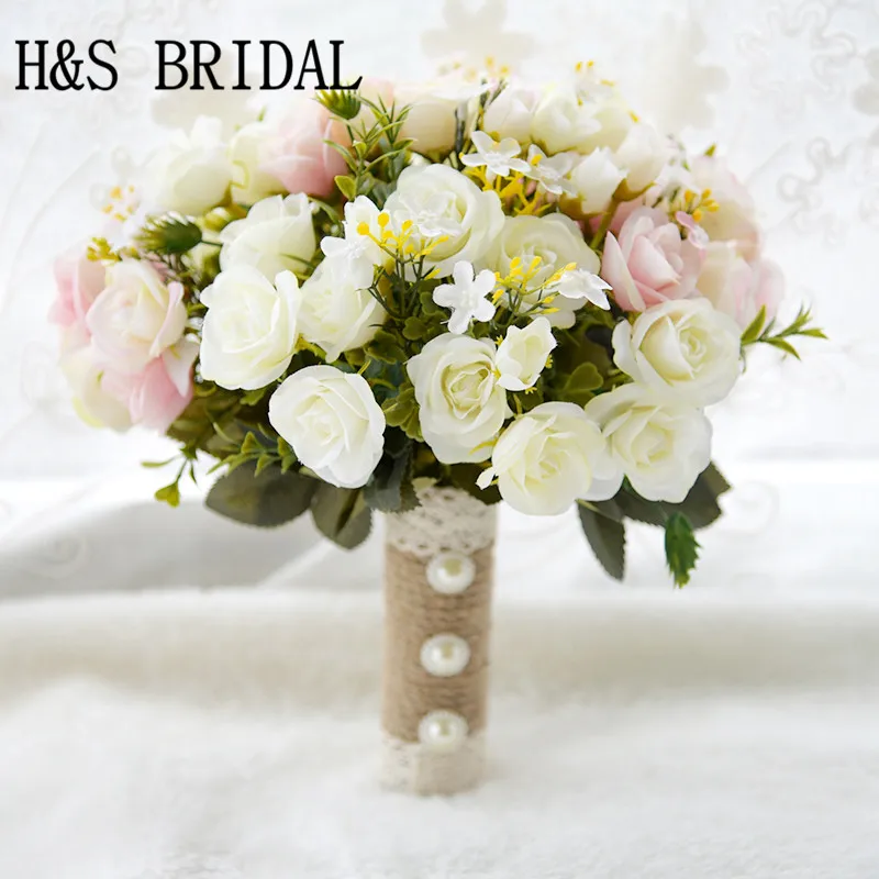 H S Bridal Dusty Blue Artificial Flowers Bride Wedding Bouquet